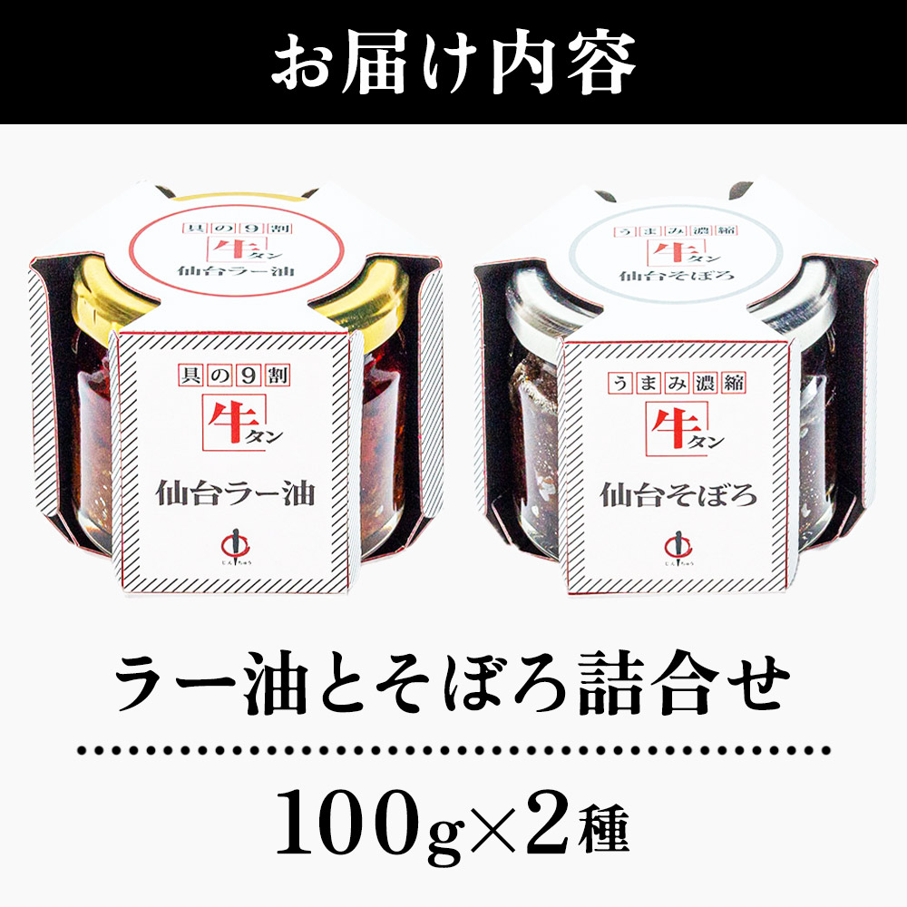 『陣中』 牛タンラー油1個 と 牛タンそぼろ1個 詰合せ 仙台 牛たん屋