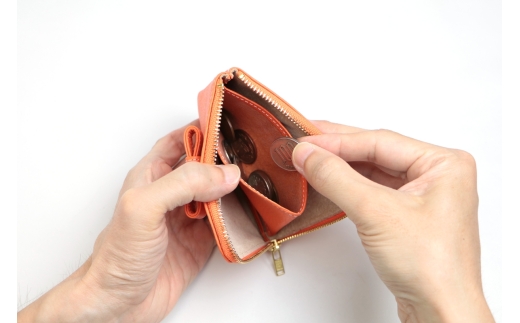 - リボン付きL型小銭入れ ジューシーオレンジ|コインケース 小銭入れ レディース 革 リボン L型 L字 小型 コンパクト 薄型 カード お札 財布 革財布 本革 レザー 革職人 デュアルライン [1248]