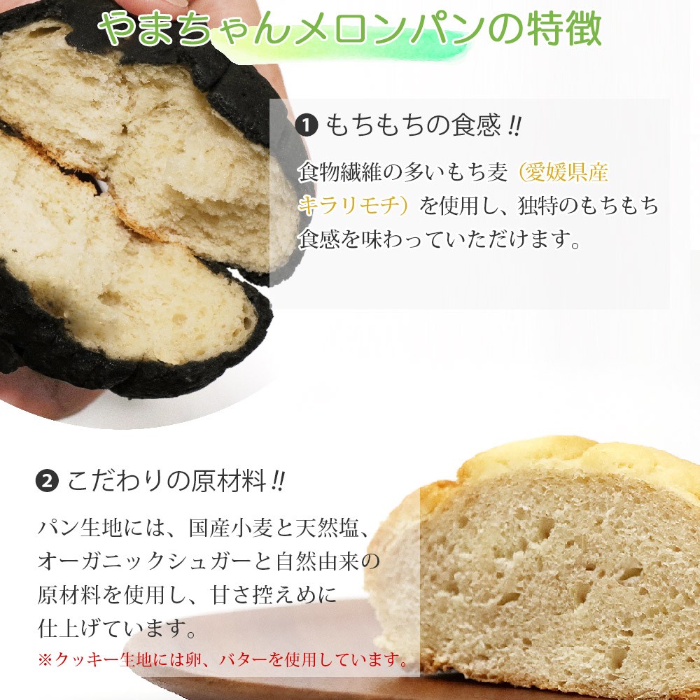 - もちもち メロンパン 6種 食べ比べ 合計8個 詰め合わせ セット 山ちゃん こだわりの手作り 愛媛県産もち麦使用 冷凍 プレーン 麻炭 紫いも 抹茶 チョコ 黒糖 甘さ控えめ