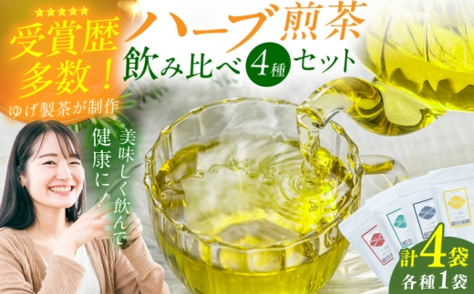 - ハーブ煎茶4種飲み比べセット お茶 八女茶 ハーブティー レモングラス エルダーフラワー ネトル ペパーミント 茶葉 広川町 / ゆげ製茶 [AFAG018]