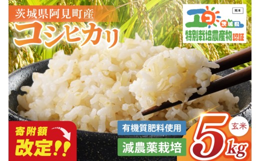 - 【寄付額改定!】特別栽培農産物認証 コシヒカリ玄米5㎏ 特栽米 ネオニコフリー|減農薬 減化学肥料 安心 安全 こしひかり 白米 弁当 おにぎり オニギリ 有機肥料 特別栽培米 エコ農産物 茨城県産米(86-02)