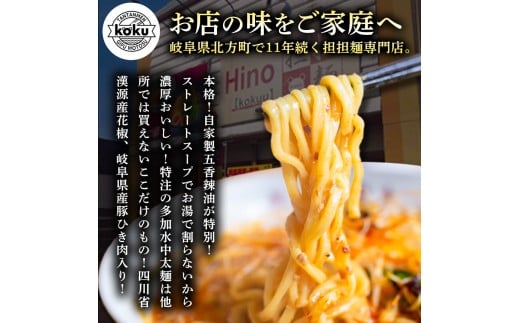 - ぎふ担担麺koku 五香辣油 の 本格 担担麺 10食セット | タンタンメン 担々麺 担担麺 冷凍 時短 簡単 ピリ辛 自家製 濃厚 スープ ストレートスープ 中太麺 麺 麺類 五香辣油 岐阜県産豚ひき肉 アレンジ 生活応援 ストック 岐阜県 北方町