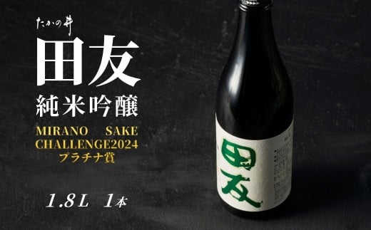 - 【特約店限定】田友 純米吟醸 1800ml×1本 高の井酒造 | 新潟 越淡麗100% 契約栽培米 瓶燗火入れ 華やかな香り 1.8L 一升瓶 天ぷら 刺身 日本酒 地酒【0002-0204-01】