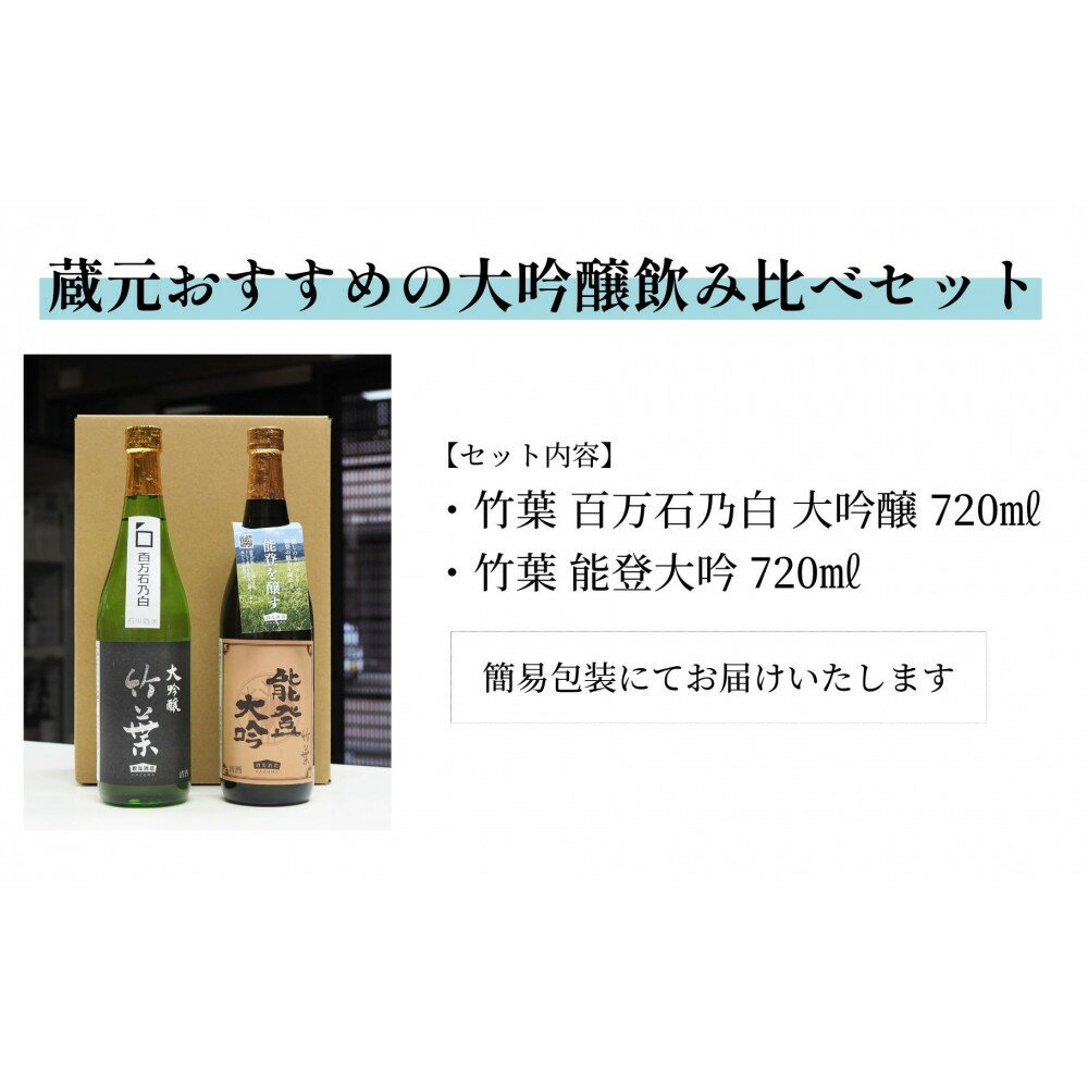 - 【ふるさと納税】【復興支援】竹葉 大吟醸720ml2本 飲み比べセット(百万石乃白大吟醸・能登大吟) | お酒 さけ 人気 おすすめ 送料無料