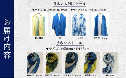 【石垣島の藍染工房】石垣島の藍染工房 島藍農園 リネンストール【選べるサイズ・カラー】KB-168-194