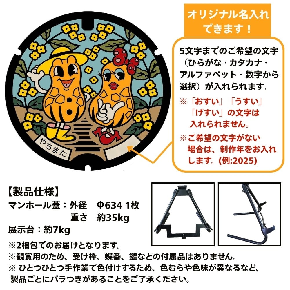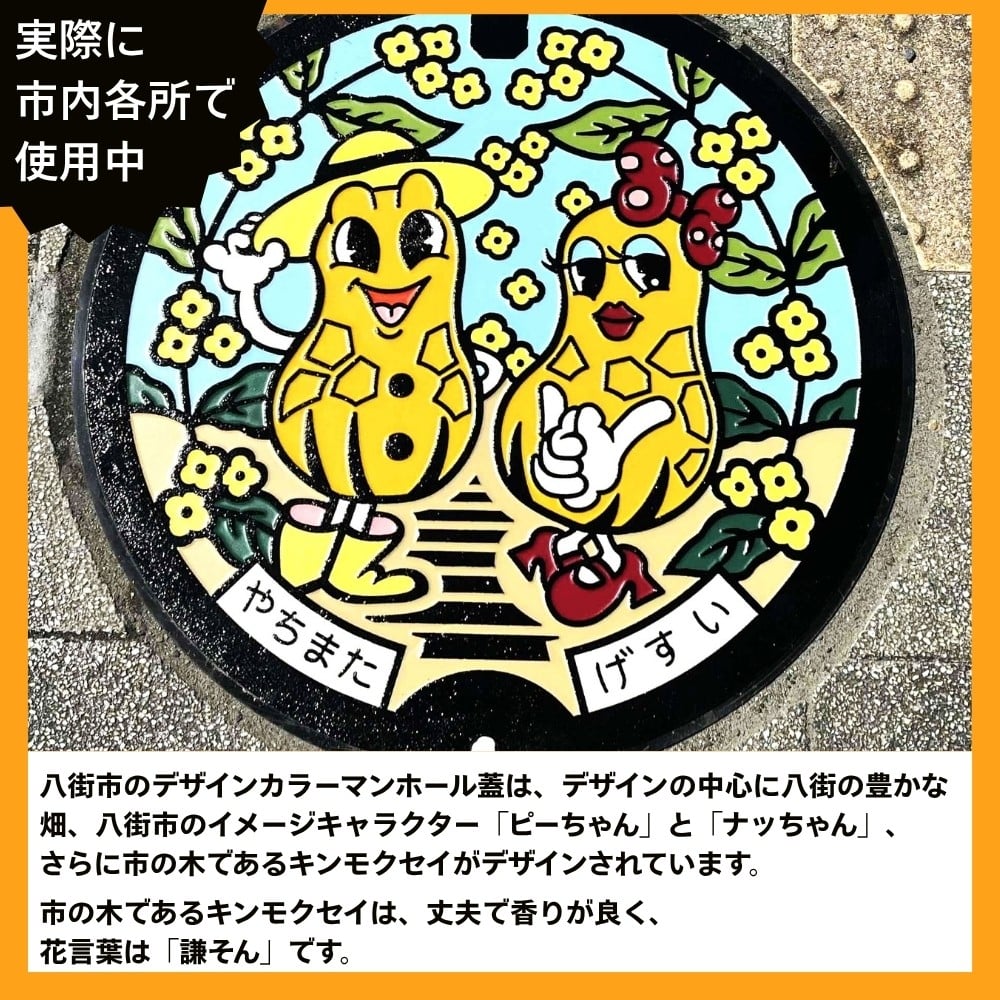 - 千葉県八街市 デザインカラーマンホール鉄蓋 ピーちゃんナッちゃん カラーマンホール ご当地マンホール