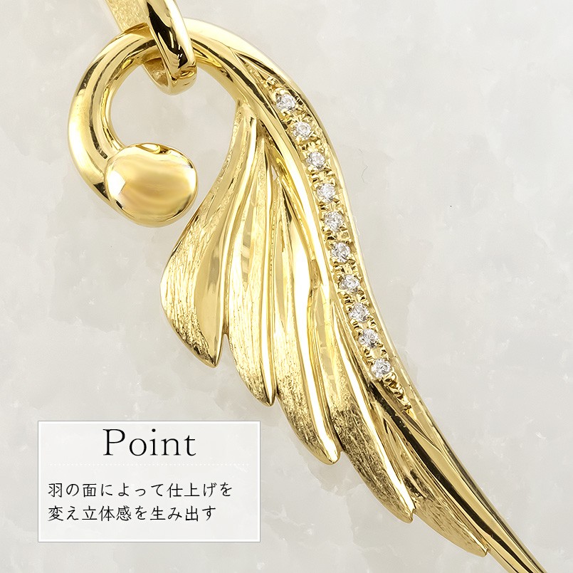 ネックレス 18金 18k メンズ フェザー 羽根 喜平用 ダイヤモンド ペンダントトップ 大ぶり 羽 イエローゴールドK18 ゴールド シンプル ジュエリー 普段 使い 190523100dym-g SWAA335-gd