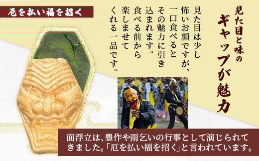 - B-251厄除け和菓子】鬼面もなか 20個入り|佐賀県鹿島市の伝統芸能「面浮立」由来|抹茶こし餡の最中|開運・福・縁起・贈り物に!ご当地スイーツ 父の日 母の日 お中元 お歳暮 送料無料