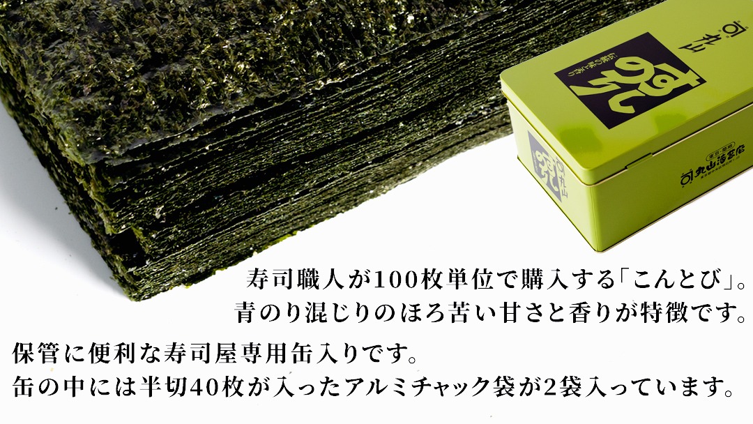 ミシュラン星付きのプロが愛用する 丸山海苔店 【こんとび(半切80枚 寿司屋専用缶入)】 のり 寿司 海苔 寿司職人 こんとび 手巻すし 家庭用 高級 プレミアム ミシュラン 三ツ星 プロ 丸山海苔 美味しい おいしい おにぎり ごはん [AV07-NT]