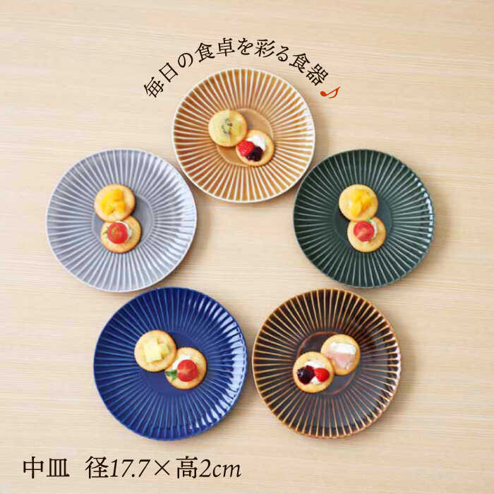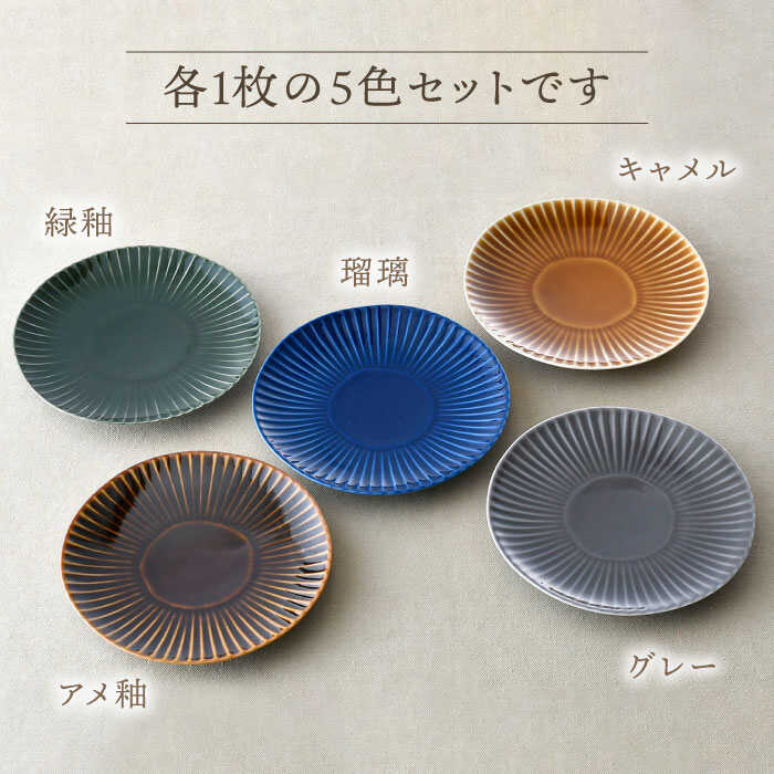 波佐見焼 しのぎ 中皿 プレート 5colors 5枚セット 一龍陶苑