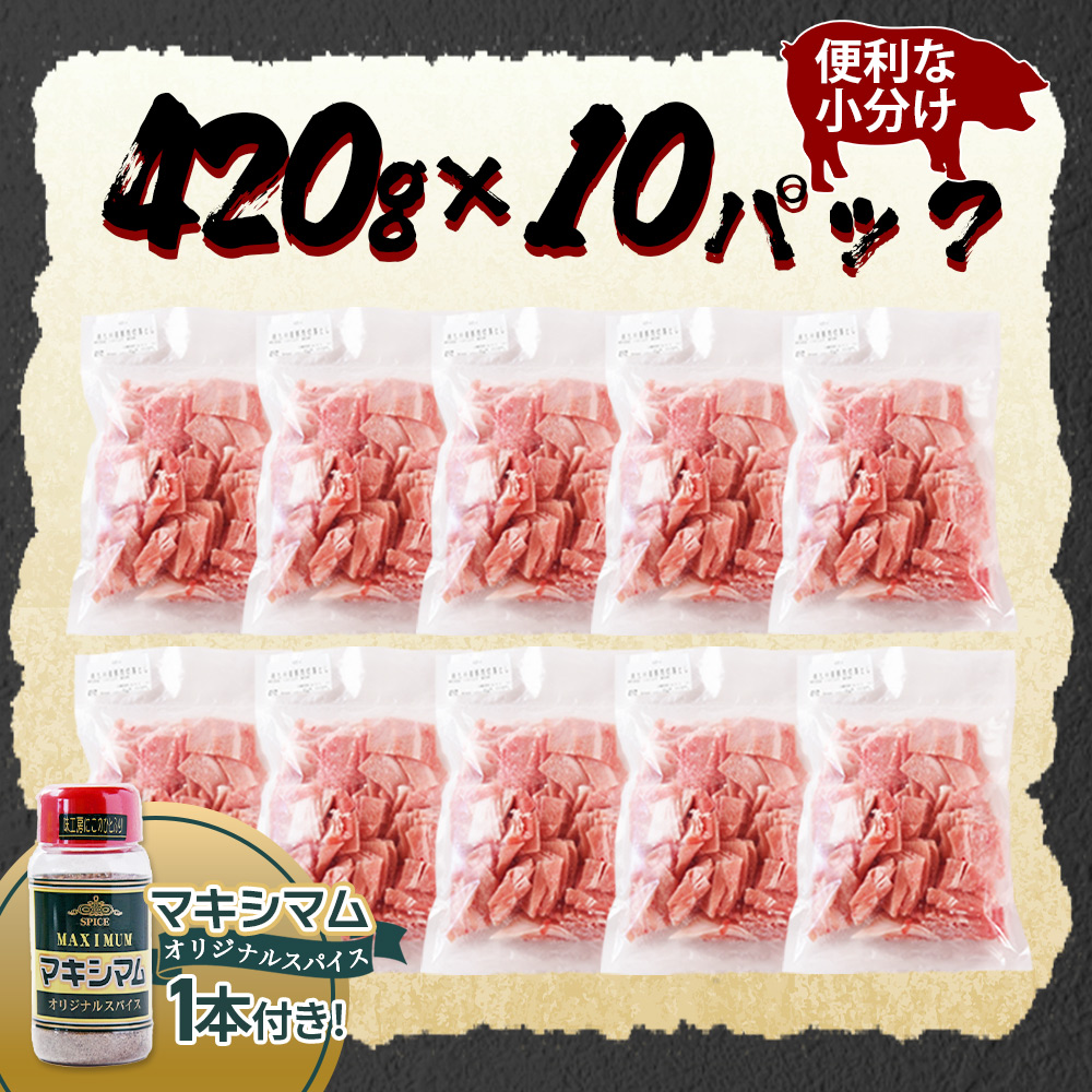 数量限定<豚肉切り落とし4.2kg+マキシマムスパイス1本付き>国産 南九州産 精肉 脂身 赤身 料理 普段使い 小分け 便利 小間切れ 豚こま 豚コマ 豚小間 薄切り お肉 冷凍保存 リピート 弁当 カット済み 包丁いらず おかず 夕食 一品 豚汁【MI719-nk】【中村食肉】