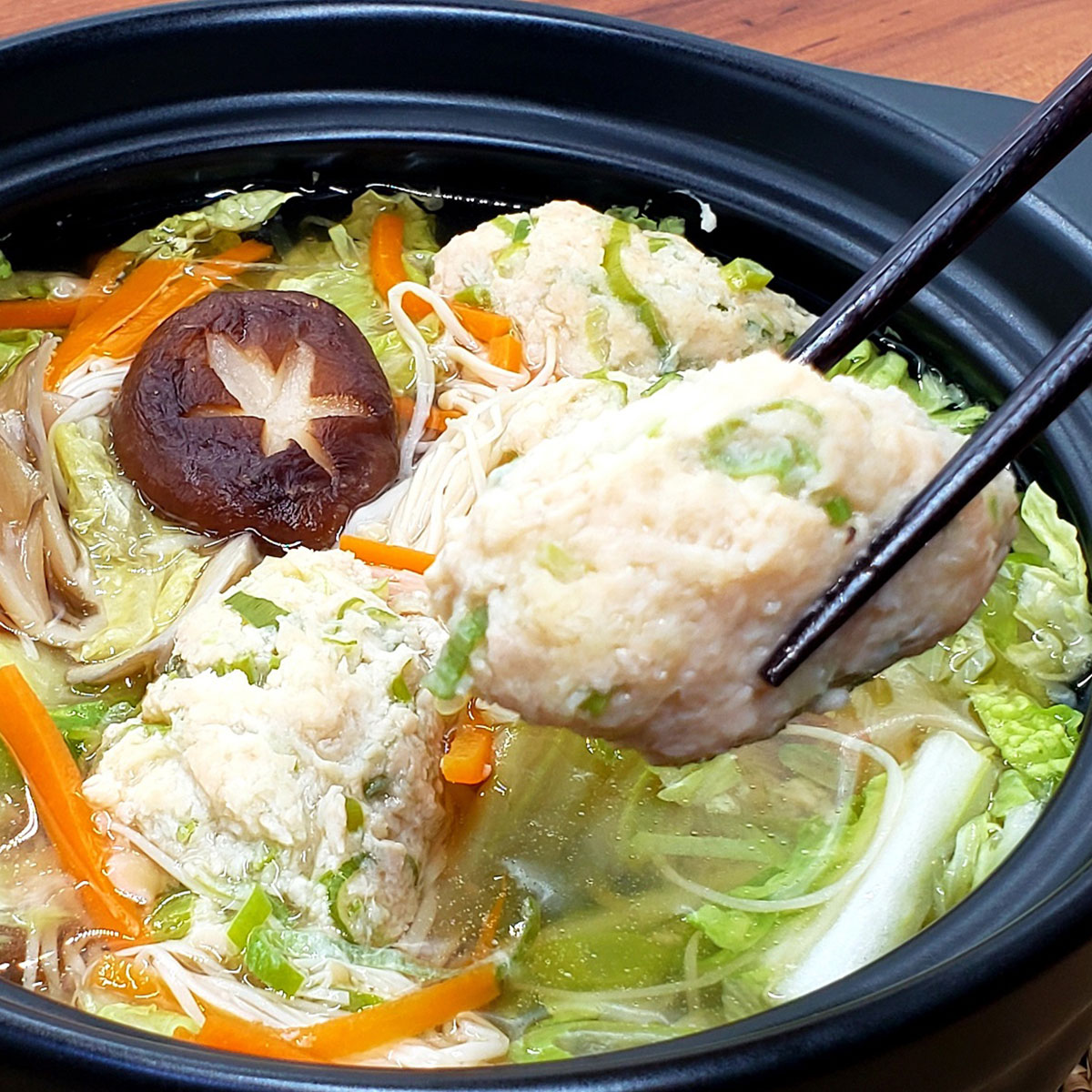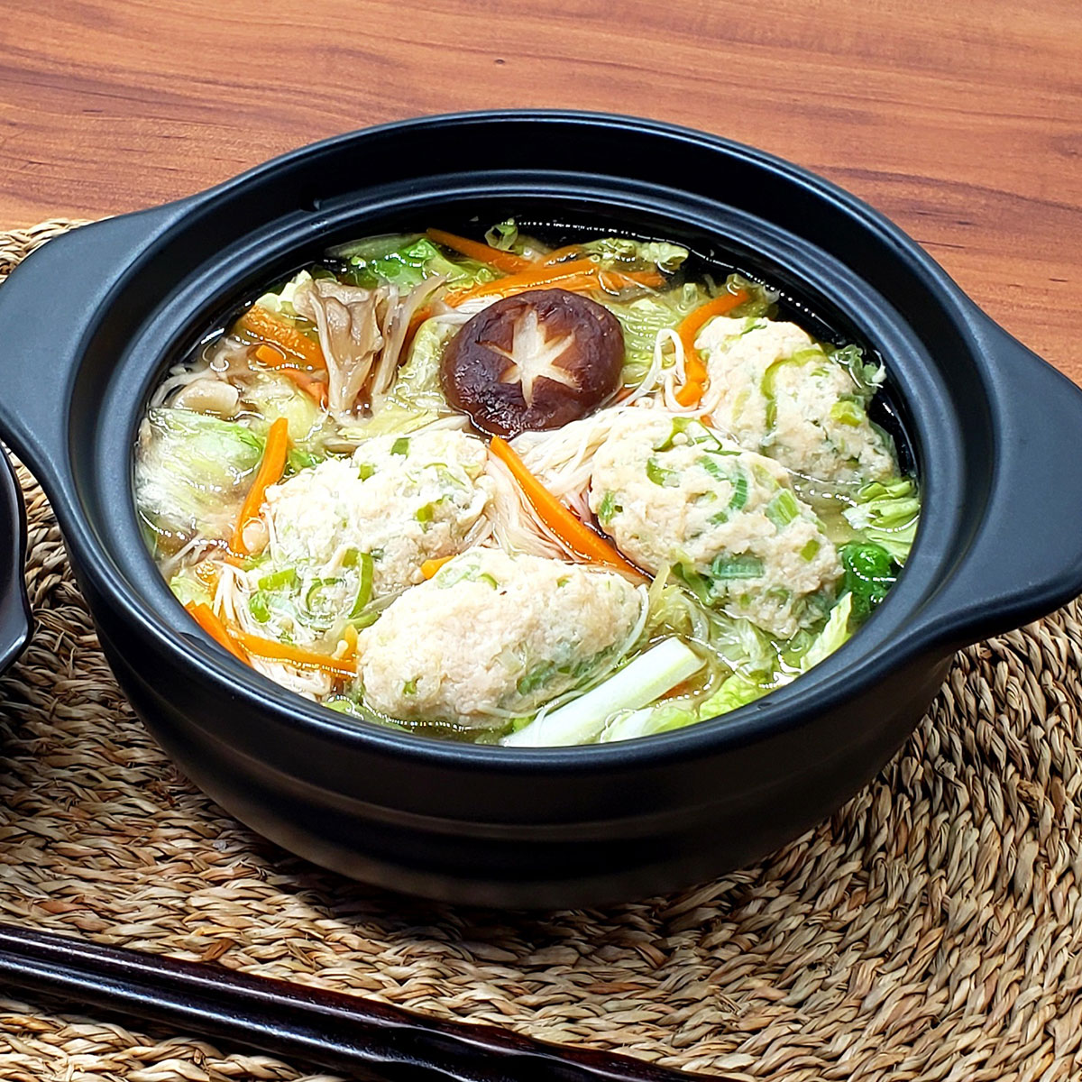 - 【レストラン銀河亭】生姜の効いた「 鶏だんご 鍋 」4個セット / 電子レンジ 温めるだけ 簡単調理 冷凍