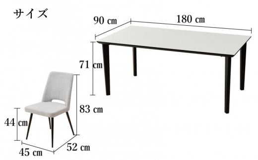 180メラミントップテーブル(木脚)とDC-5イス6脚の7点セット【4本脚/天板:シェルホワイト/張地:布グレー】
