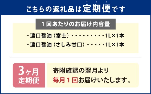 - 【3ヶ月定期便】お醤油2種味比べセット 各1Lx2 / 計2Lx3回 濃口醤油 富士 さしみ甘口 セット おさしみ醤油 刺し身醤油 料理 しょうゆ 醤油 調味料 濃い口 大分県 九重町