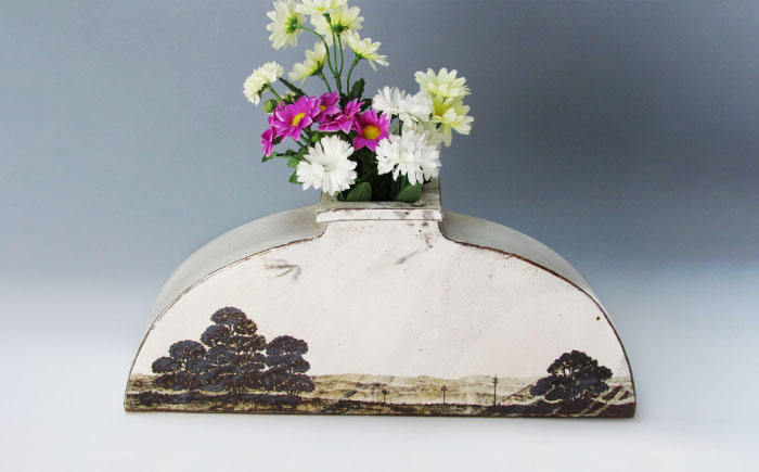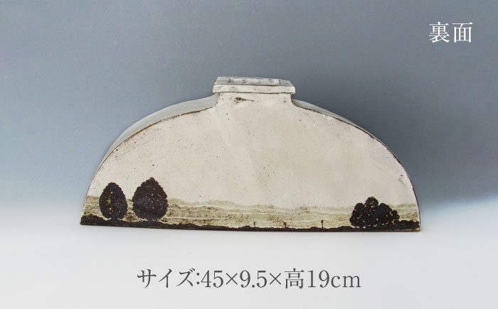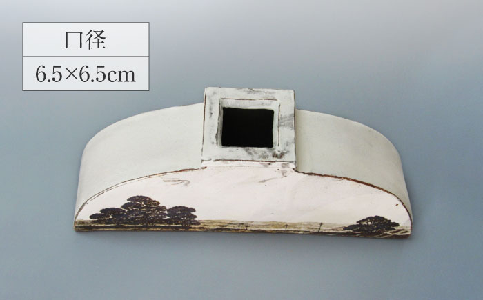 【美濃焼】粉引鉄絵 半円花器 特大サイズ 【藤山窯】 花瓶 フラワースタンド 手書き [MAH132]