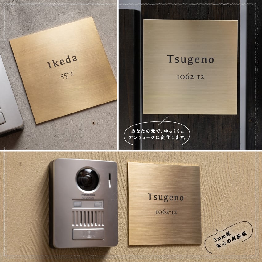 - 真鍮 極厚ゴージャスプレート表札005(13.2×13.2cm×3㎜)〈インテリア 玄関 プレート オーダーメイド 名前 ハンドメイド 戸建 マンション アンティーク〉 S4502改