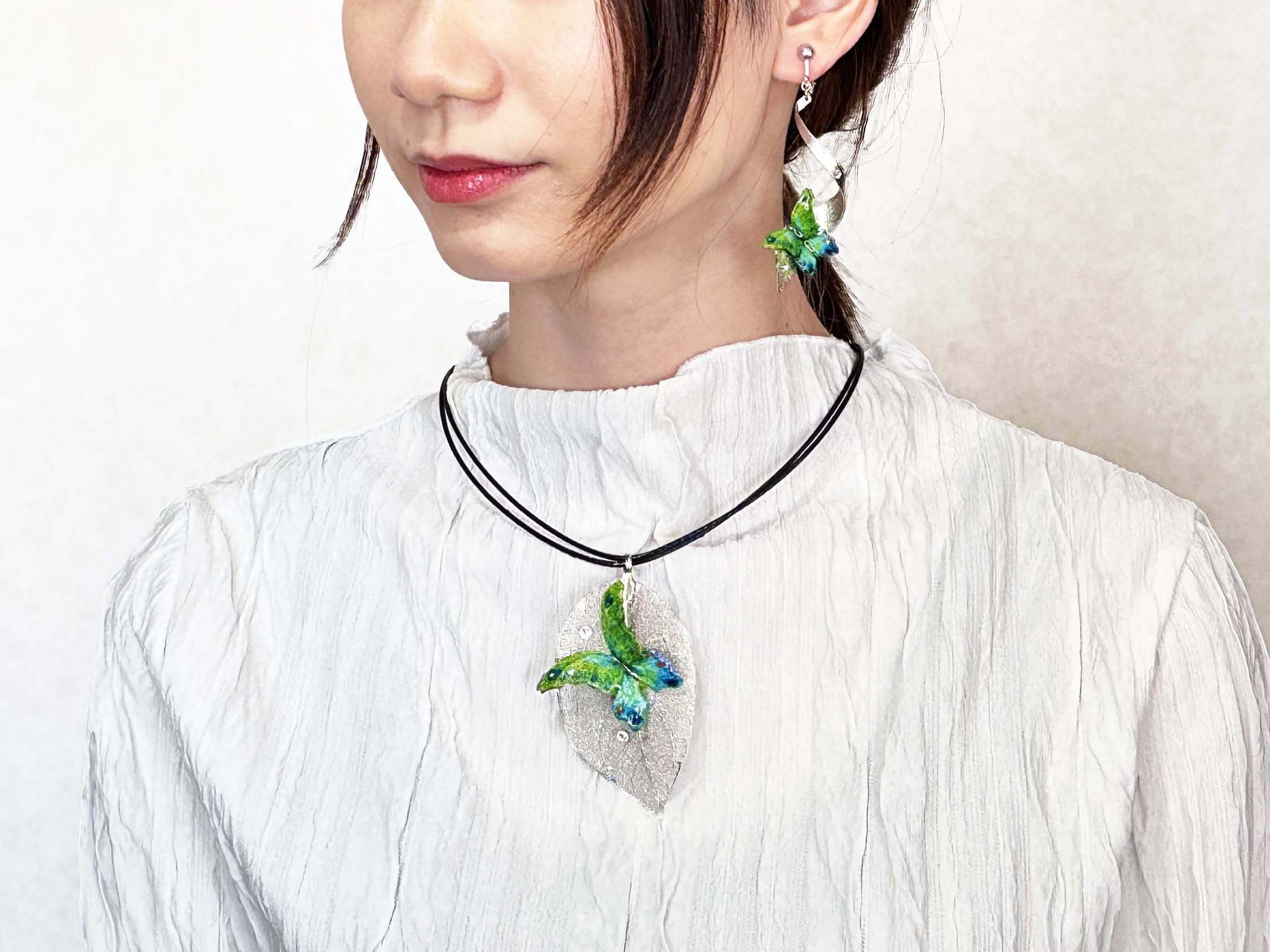- 緑瑠璃蝶 ブローチ&ネックレストップ