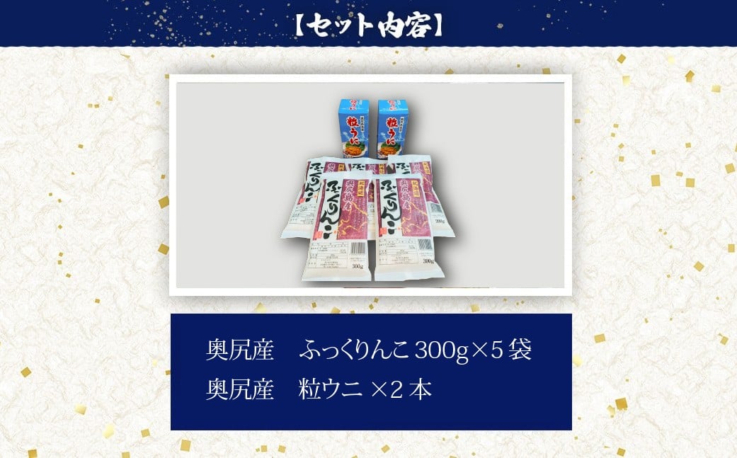 - 奥尻産 ふっくりんこ&粒ウニセット(ふっくりんこ300g×5袋・粒ウニ×2本) 【 ふるさと納税 人気 おすすめ ランキング うに ウニ 雲丹 海栗 粒ウニ 粒うに 瓶詰め 瓶 ビン ふっくりんこ お米 精米 白米 米 ごはん ご飯 白ご飯 北海道 奥尻町 送料無料 】 OKUH030