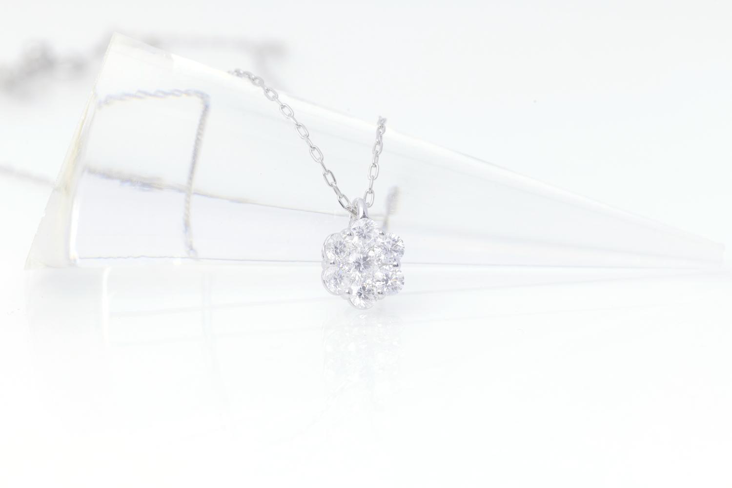 - ダイヤモンド ネックレス フラワーL 0.6ct PT プラチナ ジュエリー ダイヤ 山梨 H-729
