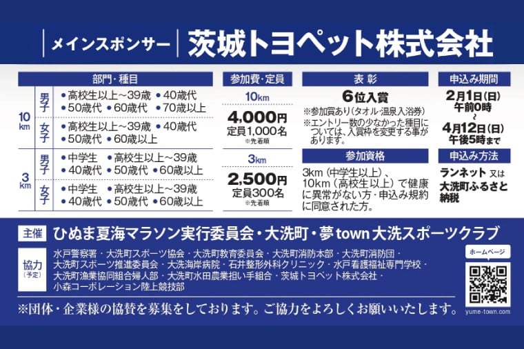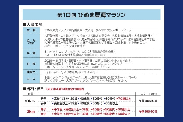 - 2026年6月7日(日) 大洗町第10回ひぬま夏海マラソン出走権 1名分 3km 茨城県 チケット スポーツ マラソン 参加