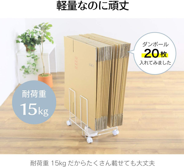 - 段ボール片づけラック奥行ワイド 【ホワイト】ダンボール ダンボール専用収納ラック 綺麗に立てて収納 移動が簡単なキャスター付 収納整理 21167(KDB-167) 加茂市 川口工器株式会社