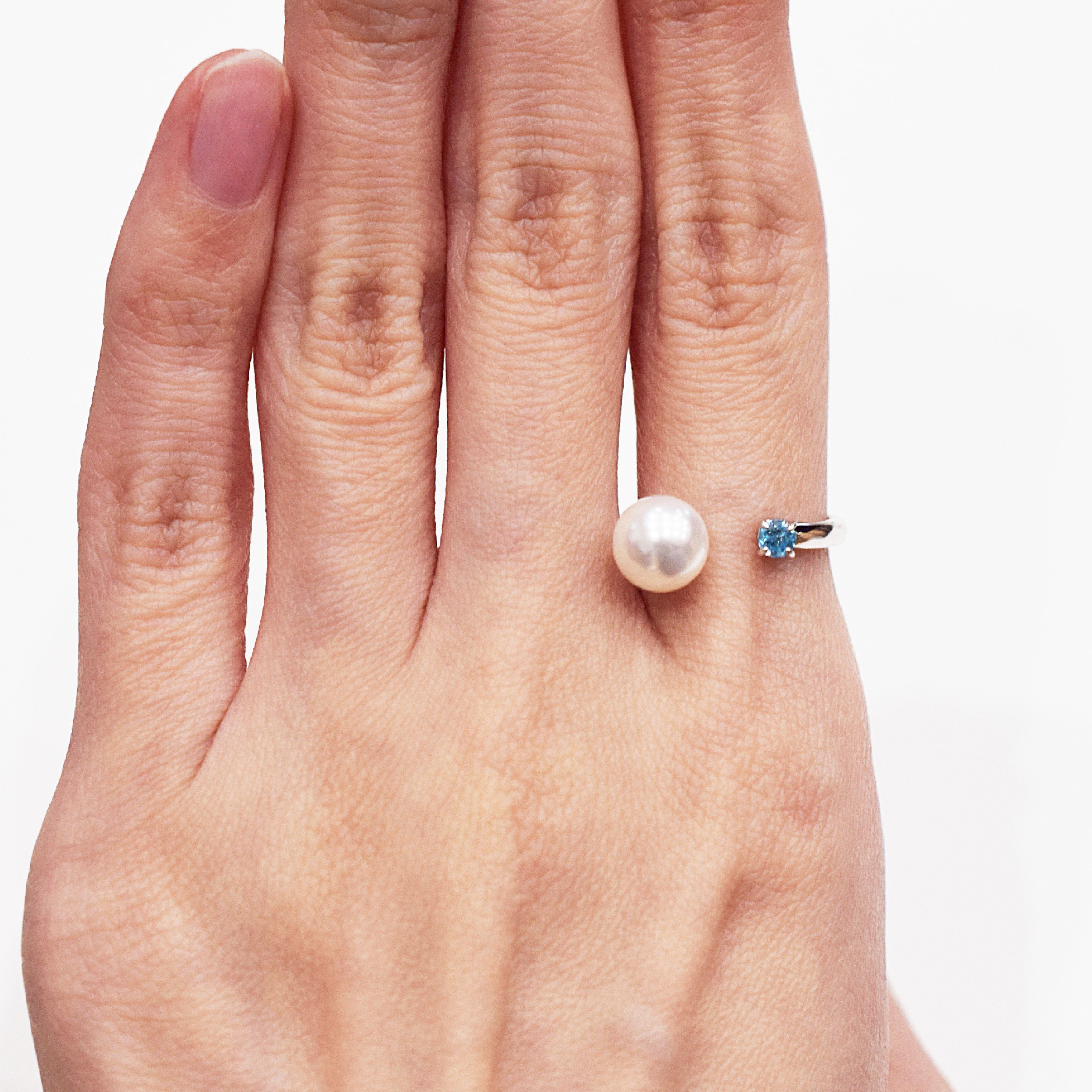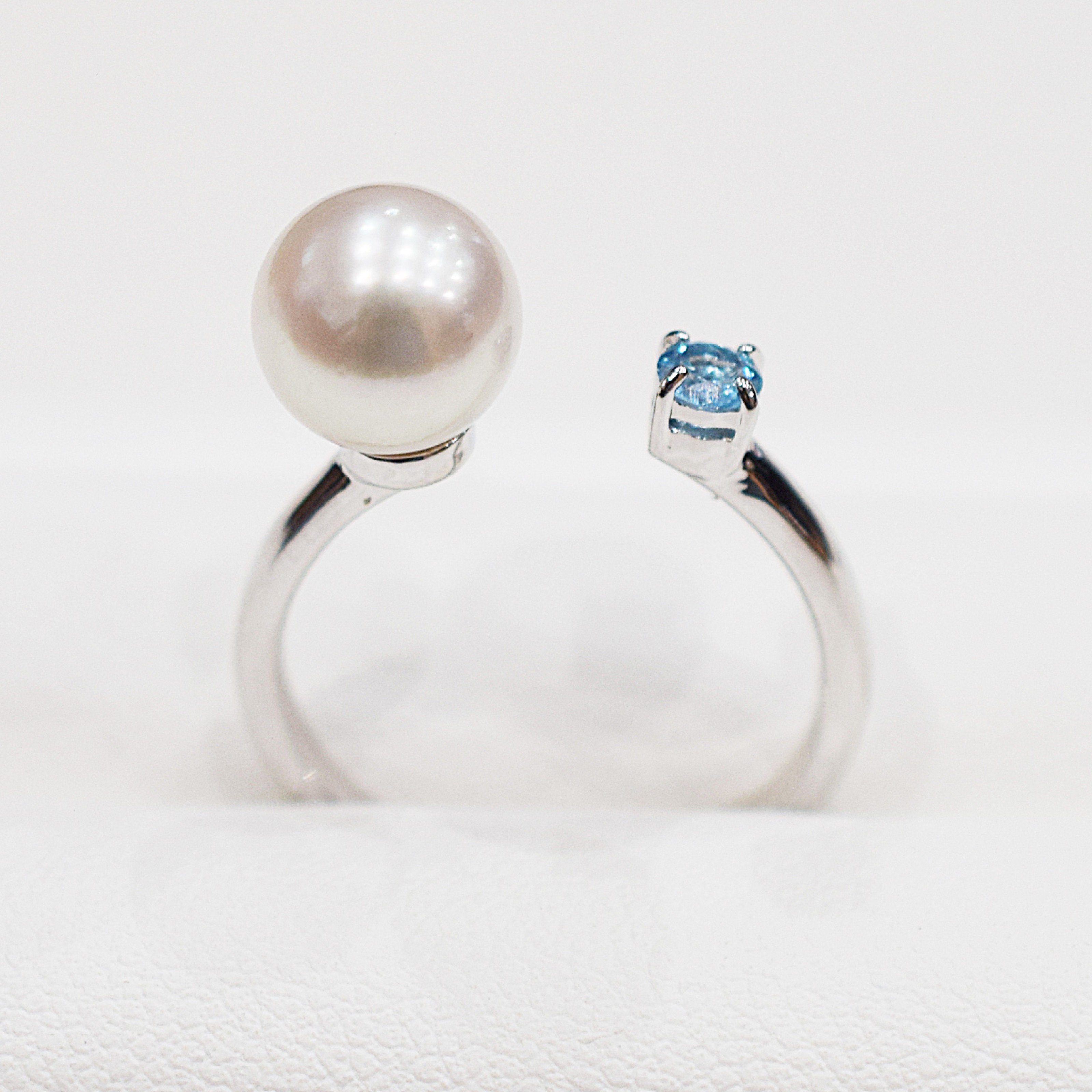 S085-445-sku_あこや真珠 リング 7.5mm - 8mm 天草 ホワイトピンク ブルートパーズ 真珠