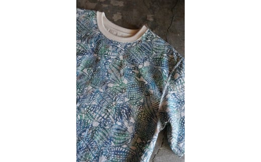 - [HAM IAM]【数量限定】手差型染クルーネックTシャツ「群生平目」グリーン系(緑色系)【M/L/XL】| Tシャツ 染物 緑 おしゃれ 和 送料無料 東京 八王子