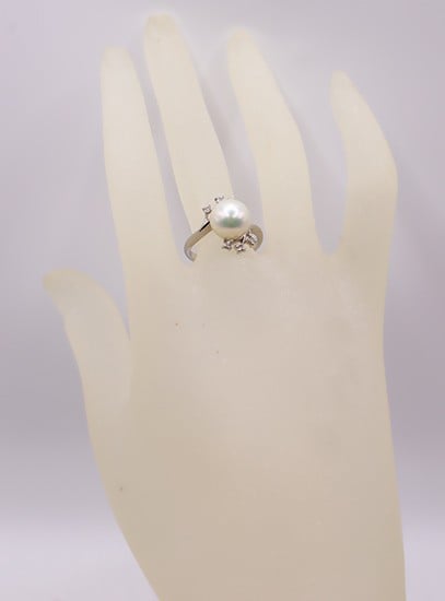 - 1951 Pt900 あこや本真珠9.2㎜ ダイヤモンド0.11ctリング