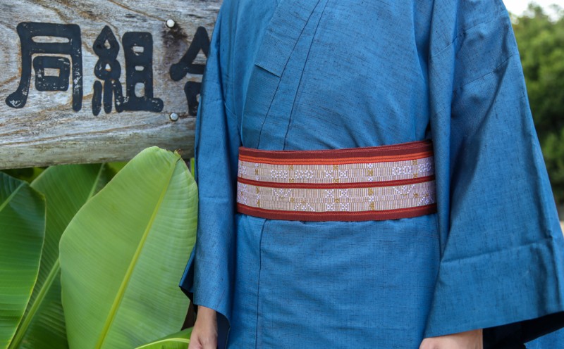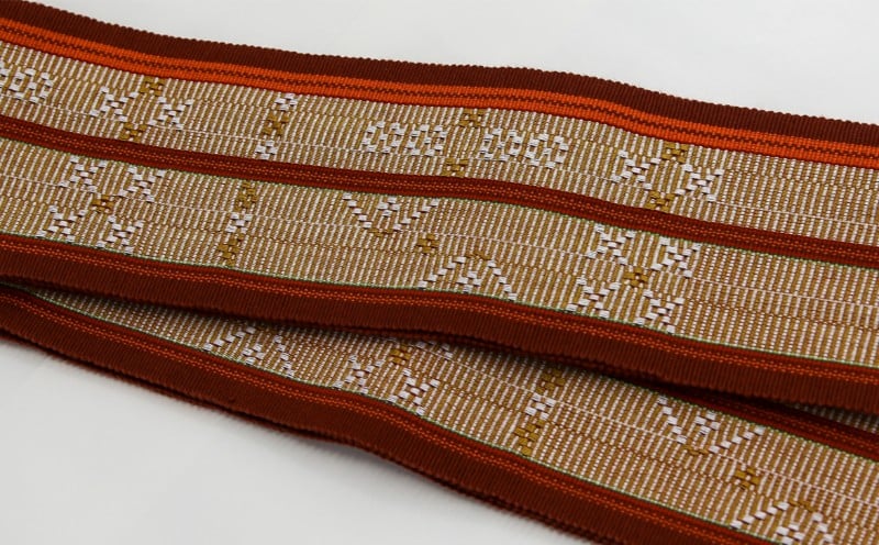 伝統工芸【読谷山ミンサー】細幅帯<茶系・1点もの> ☆ 帯 着物 沖縄 織物 読谷村 普段使いに 花織 1点物
