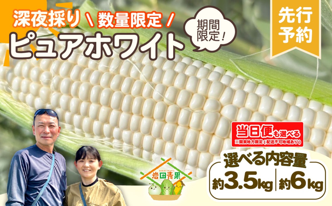 【先行予約 2026年6月下旬以降発送 】 【 令和8年産 】 深夜採り 朝出荷 とうもろこし ( ピュアホワイト ) 【 選べる内容量( 3.5kg / 6kg ) / 当日便 】 トウモロコシ 深夜採り 甘い 新鮮 6kg 3.5kg スイートコーン コーン 野菜 極甘 岩田さん 2026 訳あり [AX028ya00][SZRY]