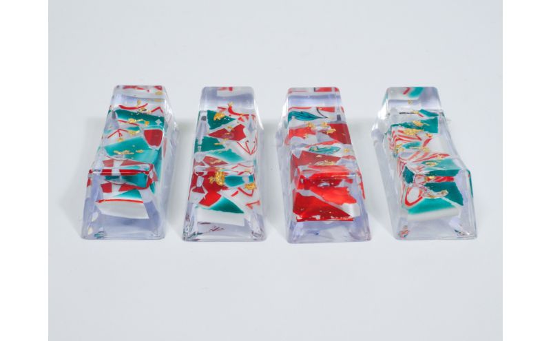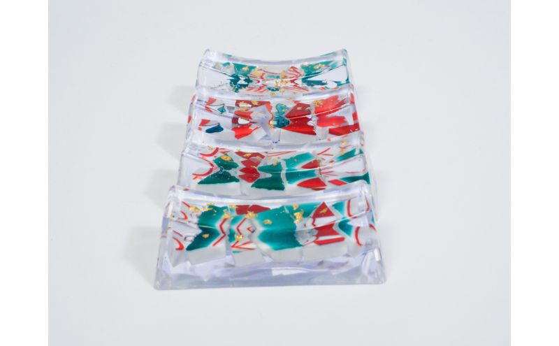 九谷焼のかけらを再生した箸置き HASHI STAND 4点セット (04 赤・緑系)