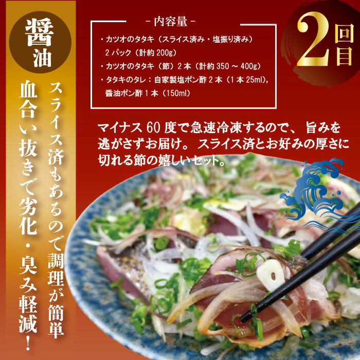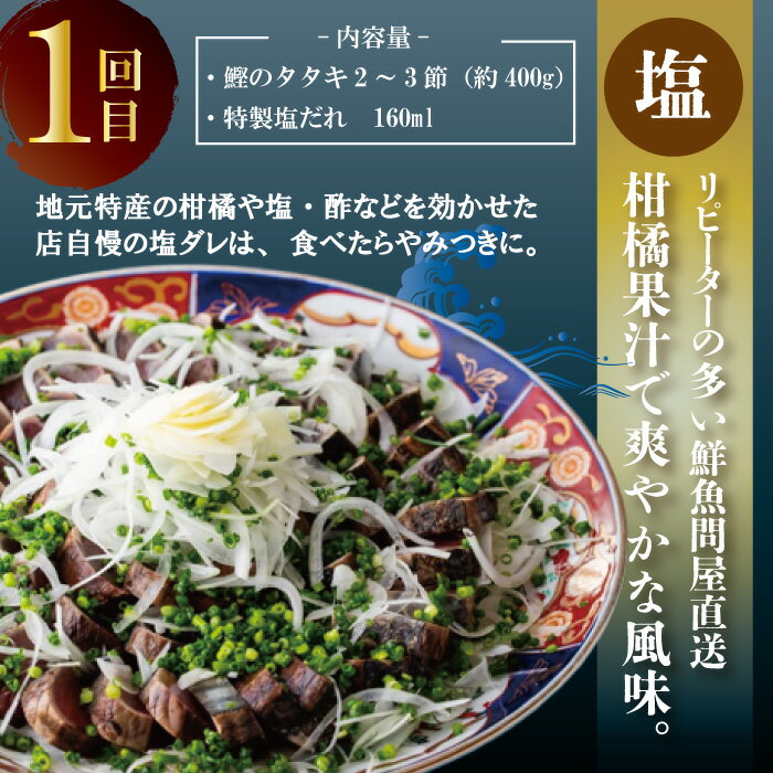 - 【ふるさと納税】4回 定期便 四万十 自慢! カツオ の たたき 2種のたれ 食べ比べ 定期便!醤油ベースの たたき と中村伝統の味 塩ダレで食べる 塩たたき 冷蔵 冷凍 魚 魚介 かつお 鰹 藁焼き タタキ ご当地 グルメ おかず 四国 高知 しまんと 送料無料 お取り寄せ 26-837
