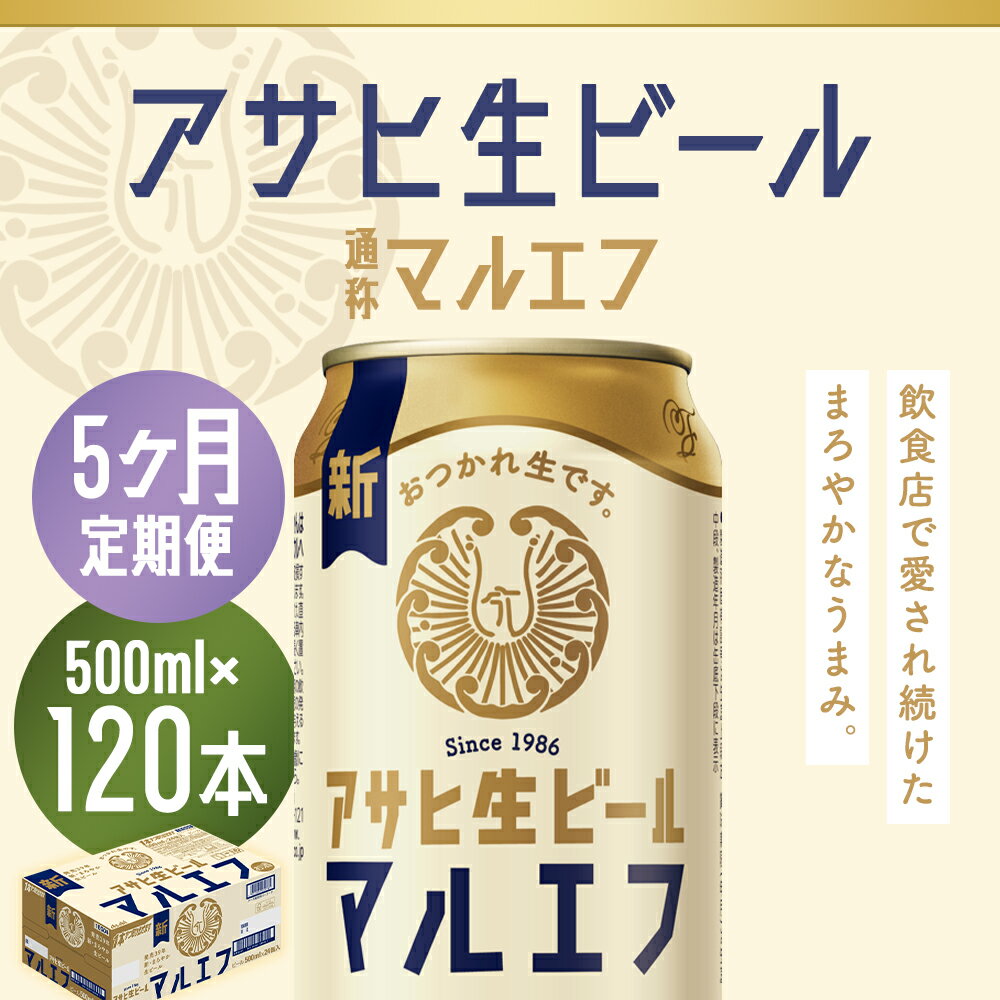 【ふるさと納税】【5か月定期便】アサヒ生ビール 500ml×24本×5回お届け 合計60L 120本 1ケース 5か月 定期便 アルコール度数4.5% 缶ビール お酒 ビール アサヒ 生ビール マルエフ 送料無料 【07214-0345】
