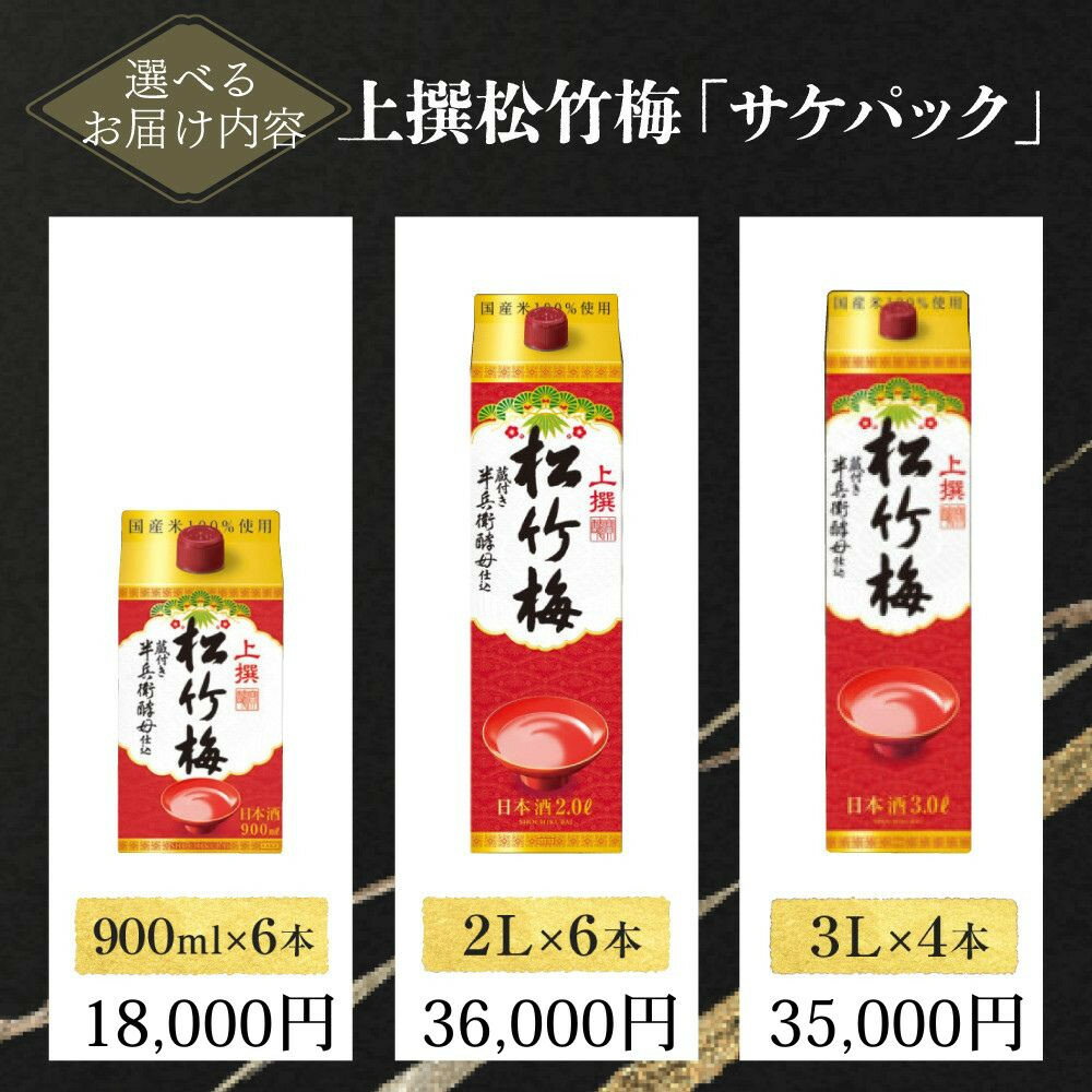 - 【ふるさと納税】【宝酒造】上撰松竹梅「サケパック」900ml~3L[ タカラ 京都 選べる 本数 お酒 日本酒 清酒 人気 おすすめ 定番 おいしい ギフト プレゼント 贈答 ご自宅用 お取り寄せ ふるさと納税 ]