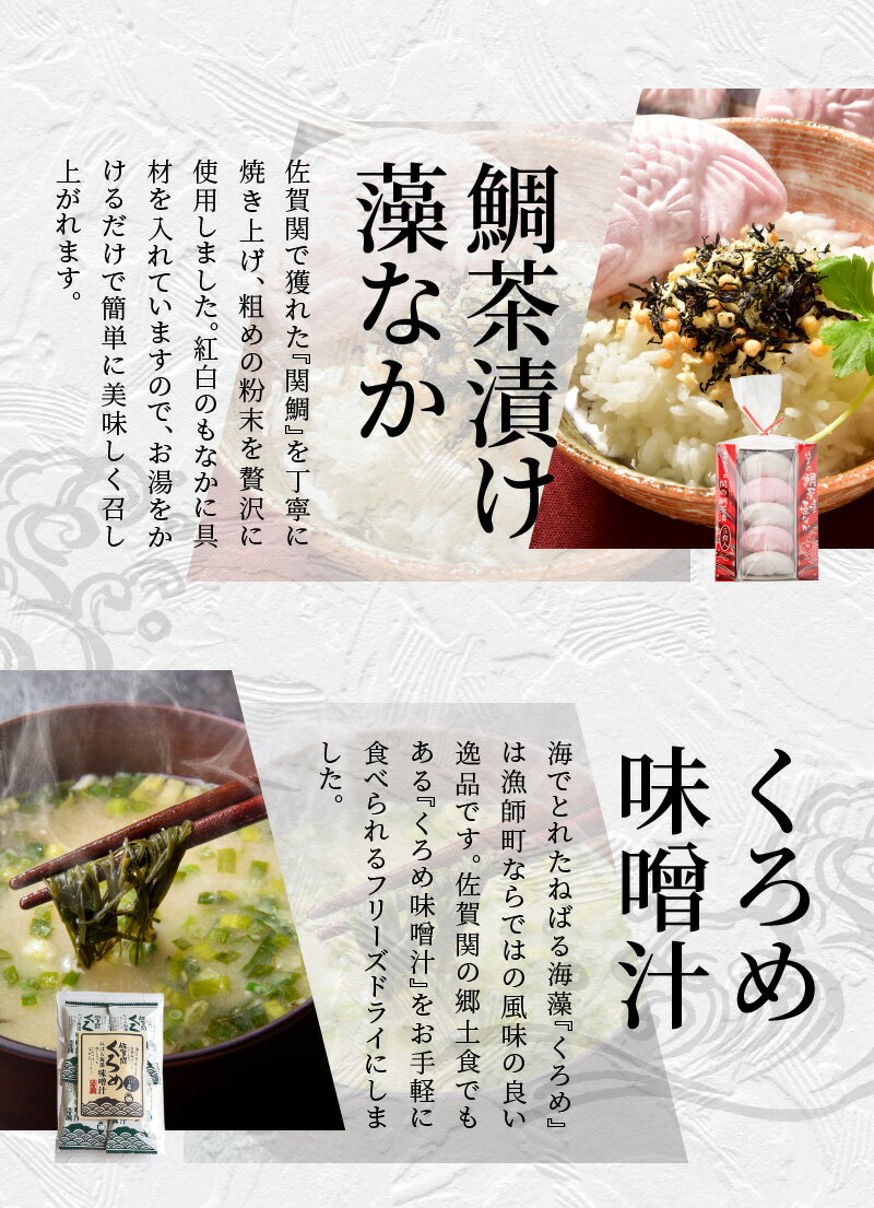 - 【ふるさと納税】関の逸品 8種類 お茶漬け 鯛茶漬け お吸い物 ひじき くろめ クロメ ふりかけ さば 真鯛 関鯛 天日干ひじき フリーズドライ 味噌汁 ご飯のお供 調味料 海の幸 海藻 お土産 ギフト 詰め合わせ 手づくり お手軽 食事 スープ 海産物 セット 佐賀関 関モノ E22022