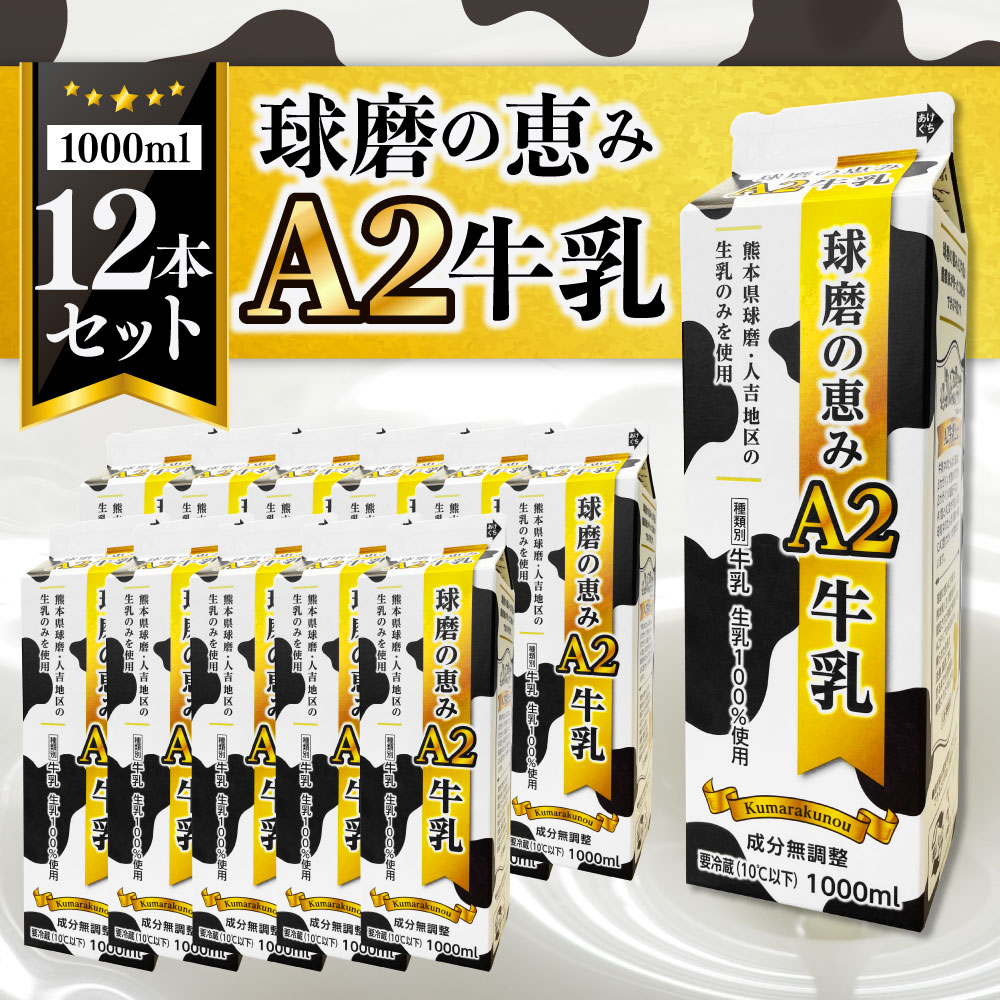 【ふるさと納税】球磨の恵みA2牛乳12本セット 1000ml×12本 生乳100% A2型-βカゼイン 牛乳 ミルク MILK 乳製品 乳飲料 熊本県 球磨 人吉 送料無料