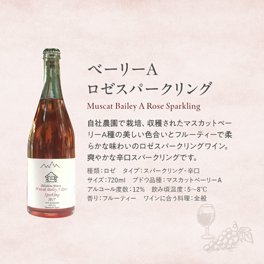 - 【ふるさと納税】ベーリーAロゼスパークリング 720ml 敷島醸造 ワイン ロゼ ロゼワイン スパークリングワイン 辛口 山梨 日本ワイン 国産ワイン ぶどう ギフト お祝い 甲斐市 F-29