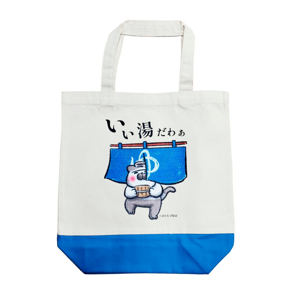 - 【ふるさと納税】またたびさんトートバッグ+巾着セット(いい湯だわぁバージョン) ナチュラル シンプルカラー キャンバストートバッグ プリント巾着(Sサイズ) サブバッグ 綿100% かばん カバン 鞄 バッグ ファッション 小物入れ 東京都 杉並区 送料無料