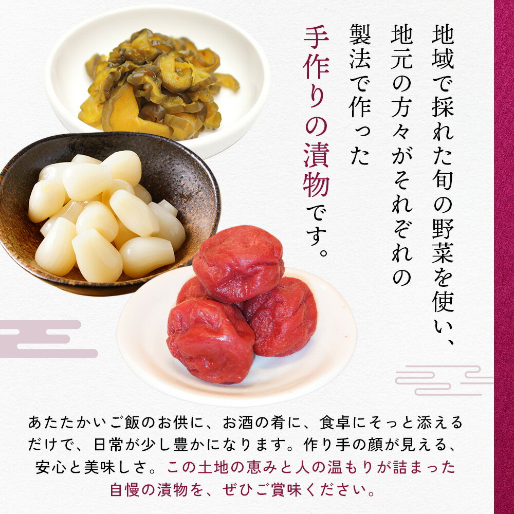 - 【ふるさと納税】手作り梅干・漬物の8品セット(梅干し1種、麹みそ2種、漬物5品) | 手作り 漬物 つけもの セット 詰め合わせ 8種 梅干し うめぼし 麹みそ 麹味噌 味噌 みそ 旬 野菜 ご飯のお供 お酒の肴 おつまみ 加工品 安心 お取り寄せ 宮城県 丸森町 丸森【12106】