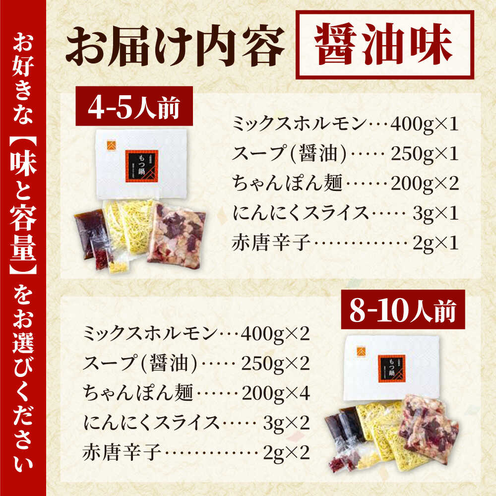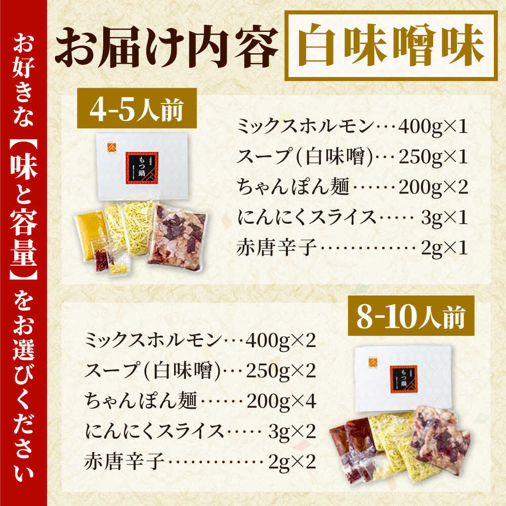 【ふるさと納税】「上田商店」工場直送 もつ鍋セット(白味噌/醤油・4-5人前/8-10人前) 吉富町/株式会社吉浦コーポレーション[BGAD059] もつ もつ鍋 もつ鍋セット 鍋セット モツ鍋 鍋 国産 牛モツ モツ ホルモン 取り寄せ スープ 博多 ふるさと納税 お土産
