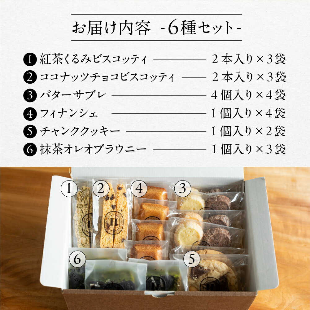 - 【ふるさと納税】焼き菓子セット 6種 19個(ビスコッティ2種、バターサブレ、フィナンシェ、チャンククッキー、抹茶オレオブラウニー)詰め合わせ【HORO JIRUSHI】焼菓子 クッキー サブレ ブラウニー 抹茶 セット ギフト 洋菓子 手作り 下呂市 20000円