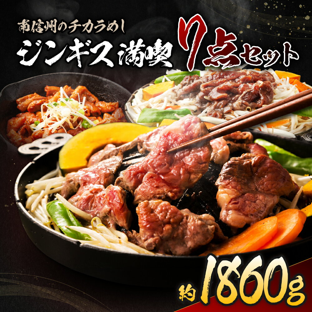 - 【ふるさと納税】南信州のチカラめし ジンギス 満喫7点セット | 肉 お肉 ニク 豚 鶏 猪 鹿 もつ 味付け肉 ジンギス 南信州 簡単 便利 家庭用 焼肉 炒め物 惣菜 おかず おつまみ 7点 セット 食べ比べ 冷凍 長野県 飯田市