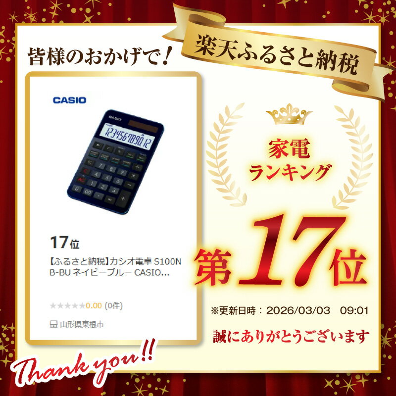 - 【ふるさと納税】カシオ電卓 S100NB-BU ネイビーブルー CASIO 計算機 事務用品 卓上電卓 オフィス用品 スタイリッシュ おしゃれ かっこいい 山形県 東根市