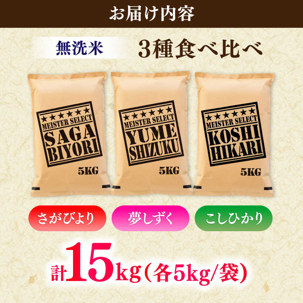 - 【ふるさと納税】【無洗米】3種食べ比べ【さがびより・夢しずく・こしひかり】各5kg (計15kg) / 無洗 おこめ 九州産 / 佐賀県 / 大塚米穀店[41ANAD047]
