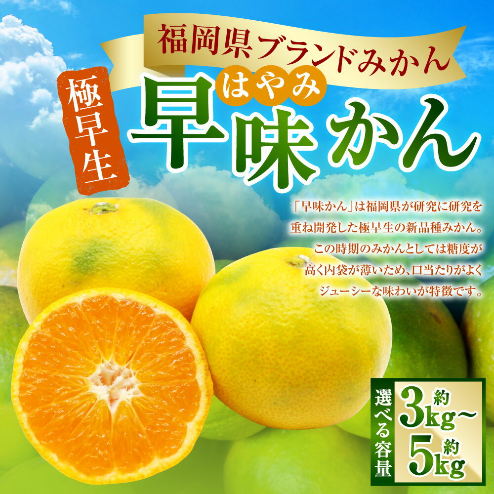 【ふるさと納税】福岡県 ブランドみかん 「早味かん」 3kg / 5kg <選べる内容量> ミカン 蜜柑 くだもの 果物 果実 フルーツ 冷蔵 福岡県産 国産 福岡県 香春町 送料無料 【2026年9月下旬~10月下旬発送予定】