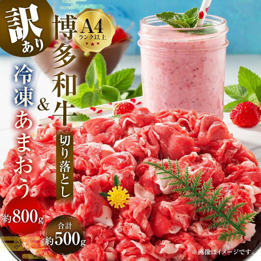 【ふるさと納税】訳あり!博多和牛切り落とし&冷凍あまおうセット 計1.3kg 牛肩又はバラ(500g)・冷凍あまおう(800g) 黒毛和牛 牛肉 お肉 牛肩 バラ いちご イチゴ 苺 フルーツ くだもの 果物 果実 冷凍 福岡県産 国産 九州 福岡県 直方市 送料無料