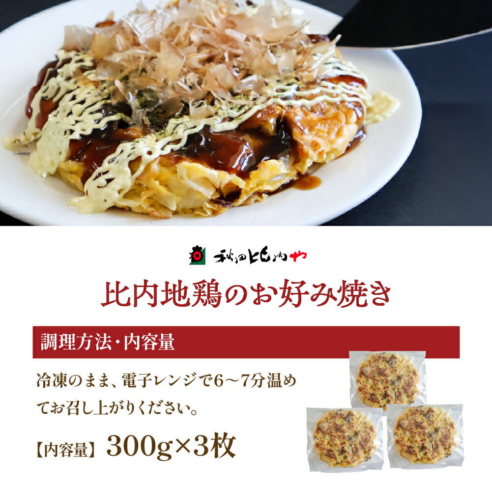 - 【ふるさと納税】比内地鶏のお好み焼き(3枚入り) 比内地鶏 肉 大館 お取り寄せグルメ 送料無料 国産 食品 食べ物 冷凍 秋田比内や 【60P2824】