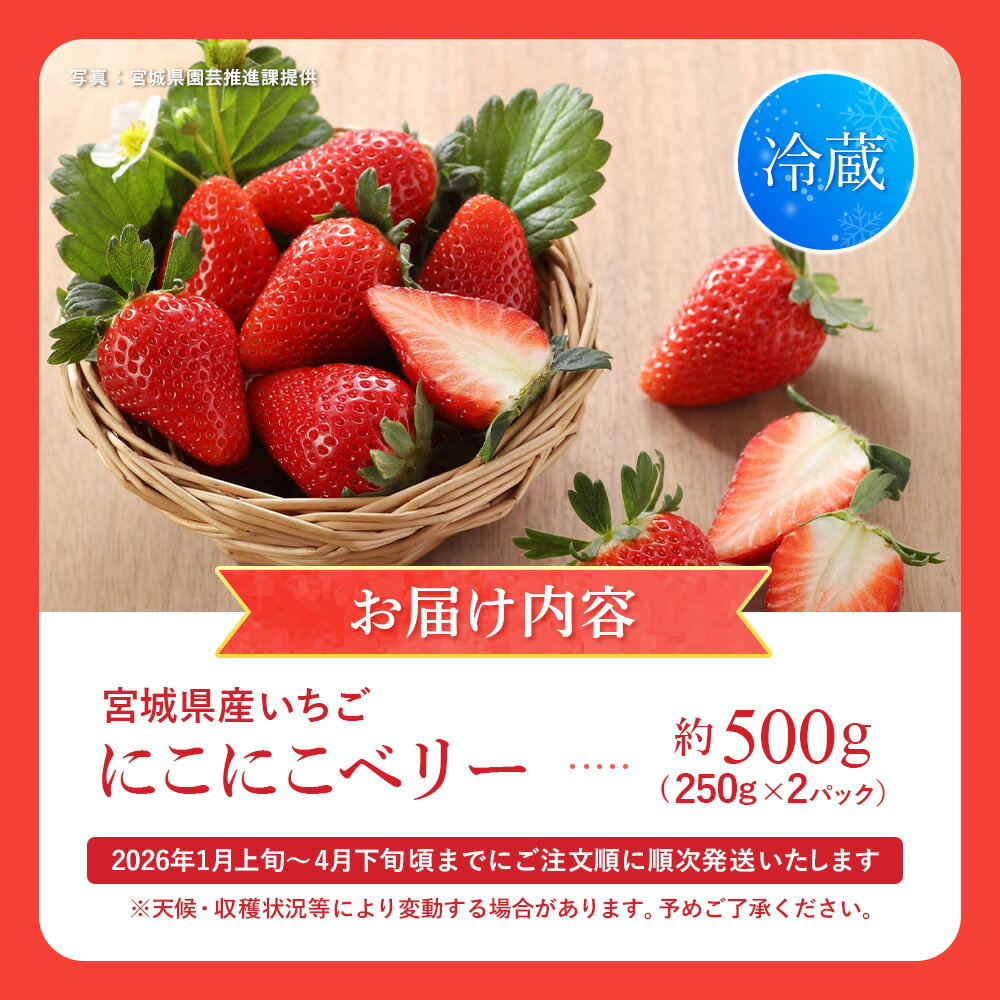 - 【ふるさと納税】宮城県産いちご「にこにこベリー」 約500g(250g×2) | いちご 苺 イチゴ ストロベリー フルーツ 果物 くだもの オリジナル品種 デザート スイーツ 甘味 酸味 断面 赤い お菓子作り 製菓材料 生食 家庭用 お取り寄せ 宮城県 丸森町 丸森【57001】