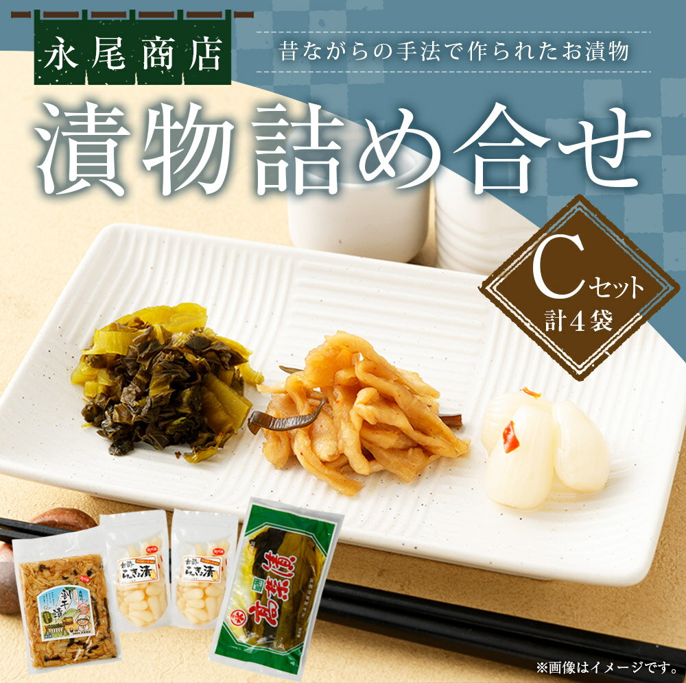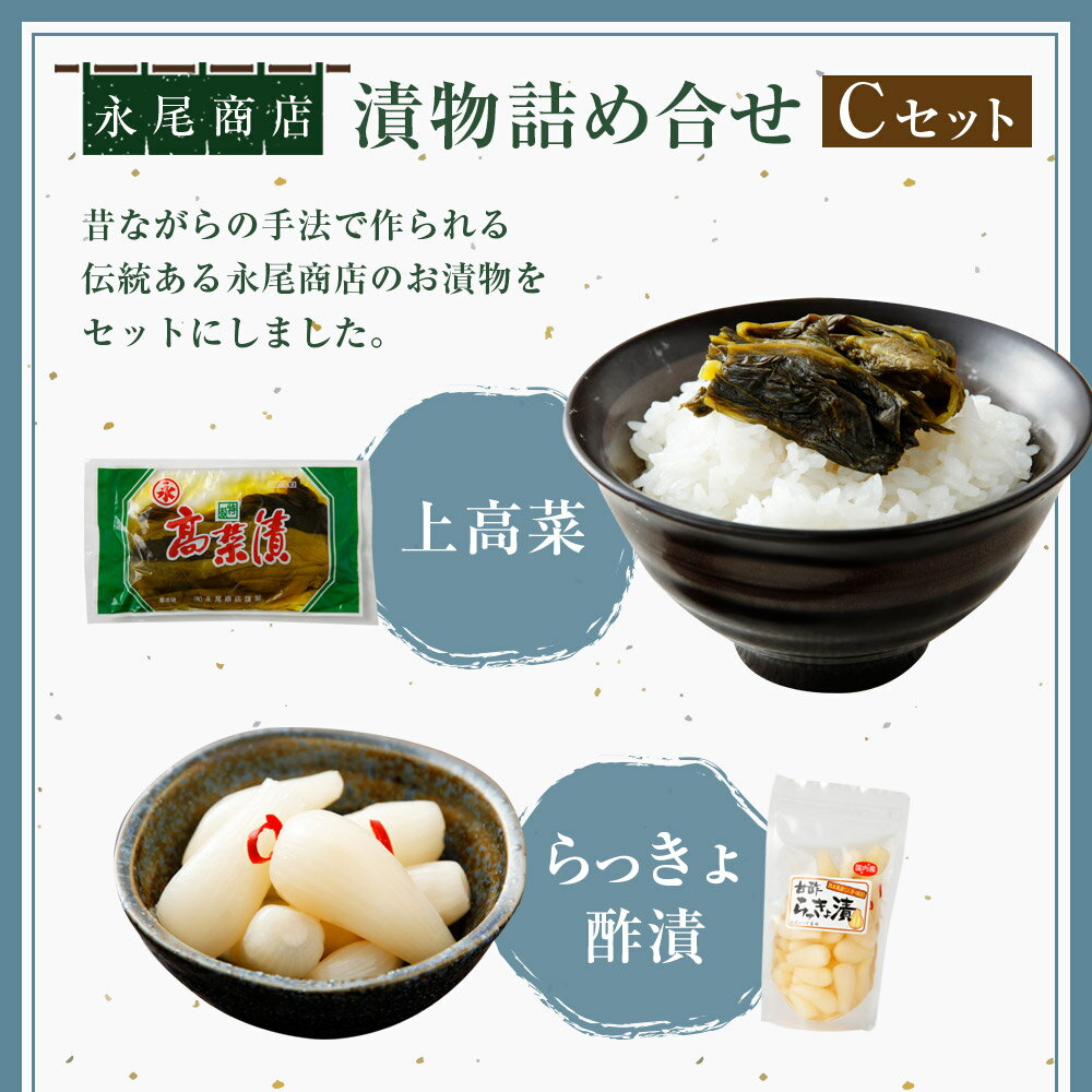 【ふるさと納税】永尾商店 漬物 詰め合せ Cセット 計4袋 計約810g 上高菜 160g×1袋 人吉割干漬 250g×1袋 らっきょ酢漬 200g×2袋 セット 熊本県 相良村 漬け物 つけもの 冷蔵 国産 送料無料