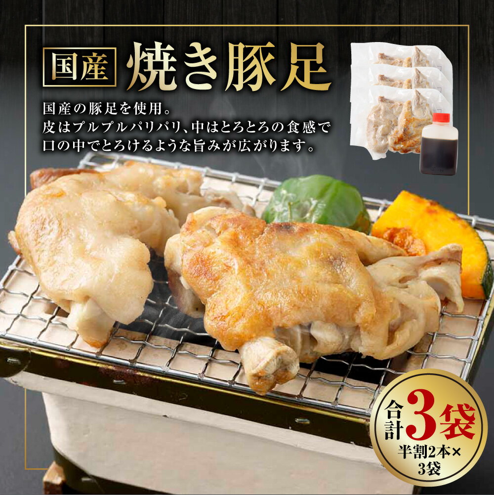【ふるさと納税】国産 焼き豚足 半割2本×3袋 計6本 豚足 とんそく 半割 豚 豚肉 惣菜 おかず おつまみ 冷凍 簡単調理 レンジ 熊本県 上天草市 送料無料